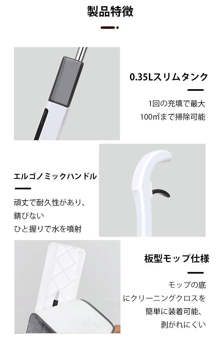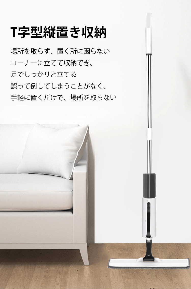 床拭きスプレー付きモップ