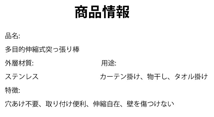 【伸縮式物干し突っ張り棒】多目的、穴あけ不要、ぴったり密着、壁を傷つけない、長さ調節可能、ズレ落ちしない